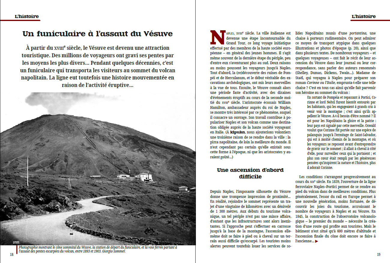 À partir du xviiie siècle, le Vésuve est devenu une attraction touristique. Des millions de voyageurs ont gravi ses pentes par les moyens les plus divers… Pendant quelques décennies, c’est un funiculaire qui transporta les visiteurs au sommet du volcan napolitain. La ligne eut toutefois une histoire mouvementée en raison de l’activité éruptive…