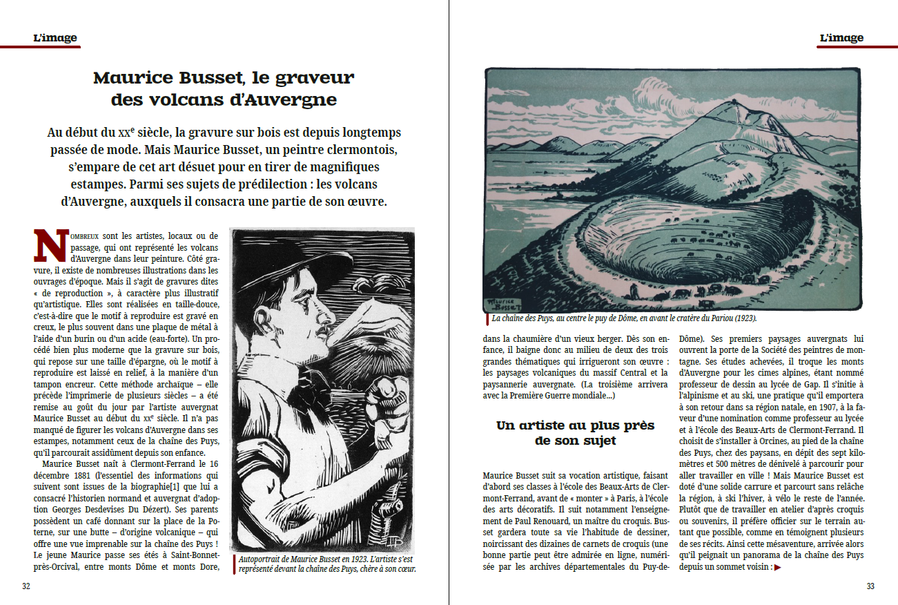 Au début du xxe siècle, la gravure sur bois est depuis longtemps passée de mode. Mais Maurice Busset, un peintre clermontois, s’empare de cet art désuet pour en tirer de magnifiques estampes. Parmi ses sujets de prédilection : les volcans d’Auvergne, auxquels il consacra une bonne partie de son œuvre.